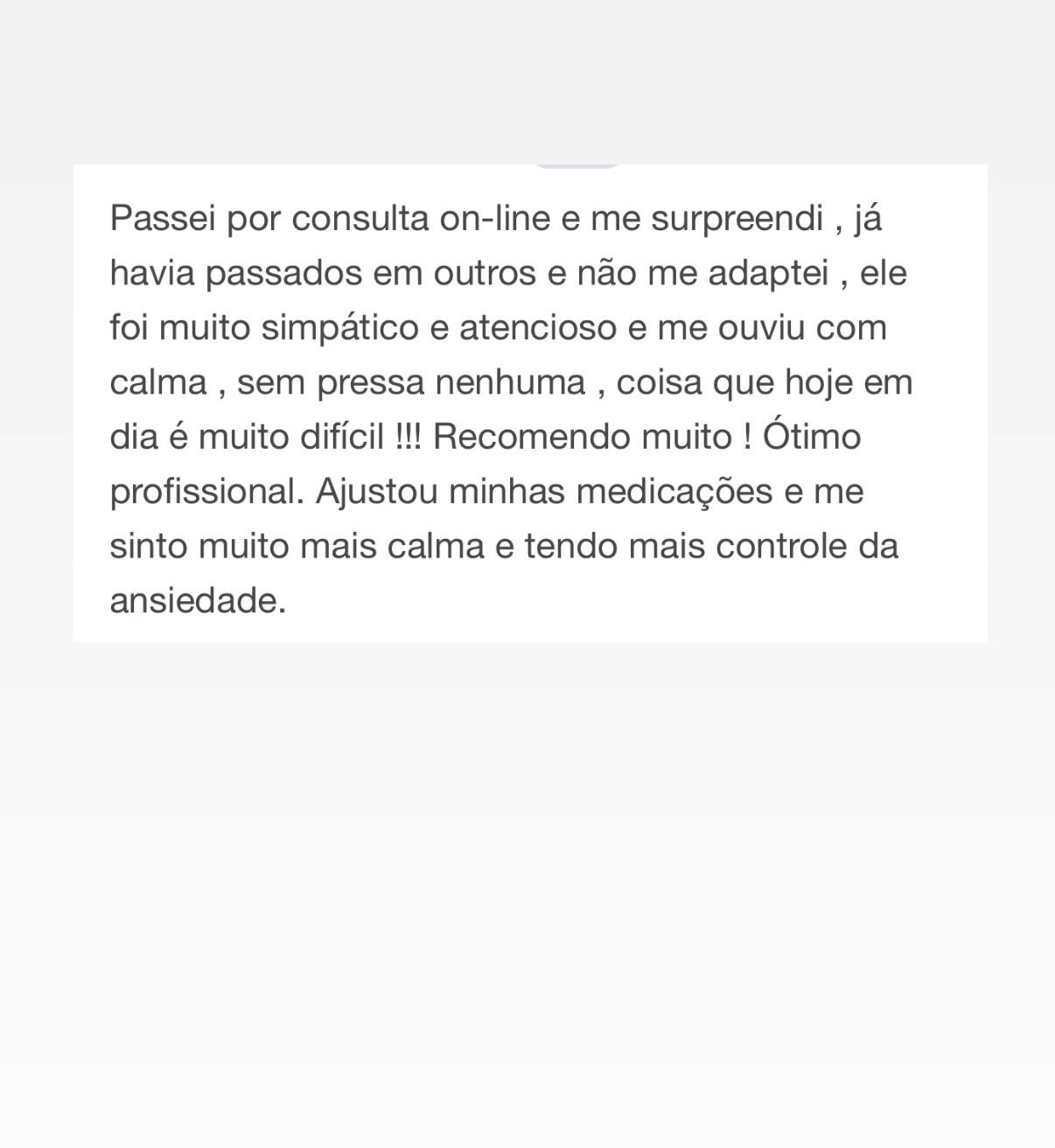 Mais do que prescrever, o Dr. Paulo Cesar oferece uma psiquiatria atualizada, baseada em evidências e conduzida com responsabilidade, equilíbrio e atenção individual a cada paciente.